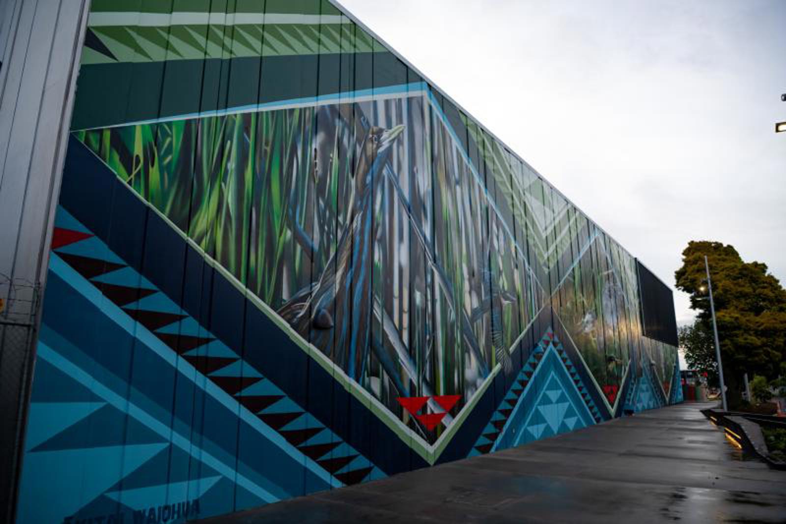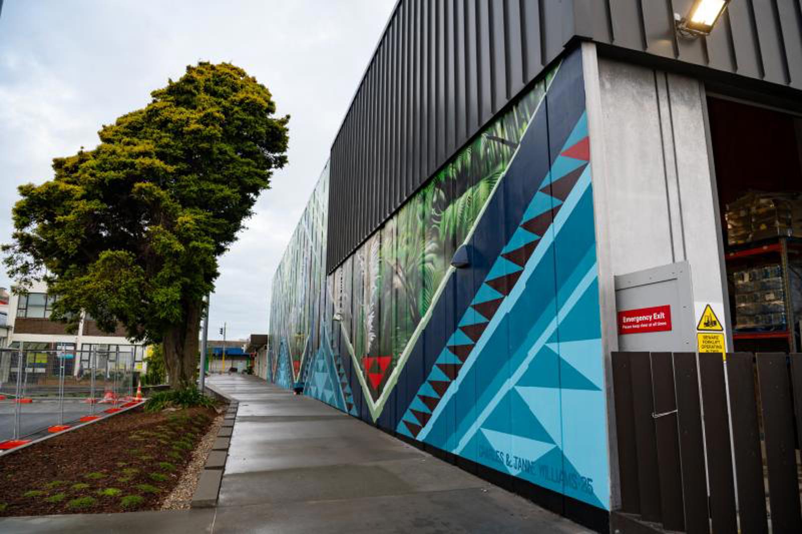 Adding cultural depth, the laneway showcases a striking mural designed by Maori artists Charles and Janine Williams. Inspired by the Bittern, a native wetland bird once found in the area, and the prominent Puriri tree in the laneway, the artwork reflects local ecology and heritage through its natural colour palette.