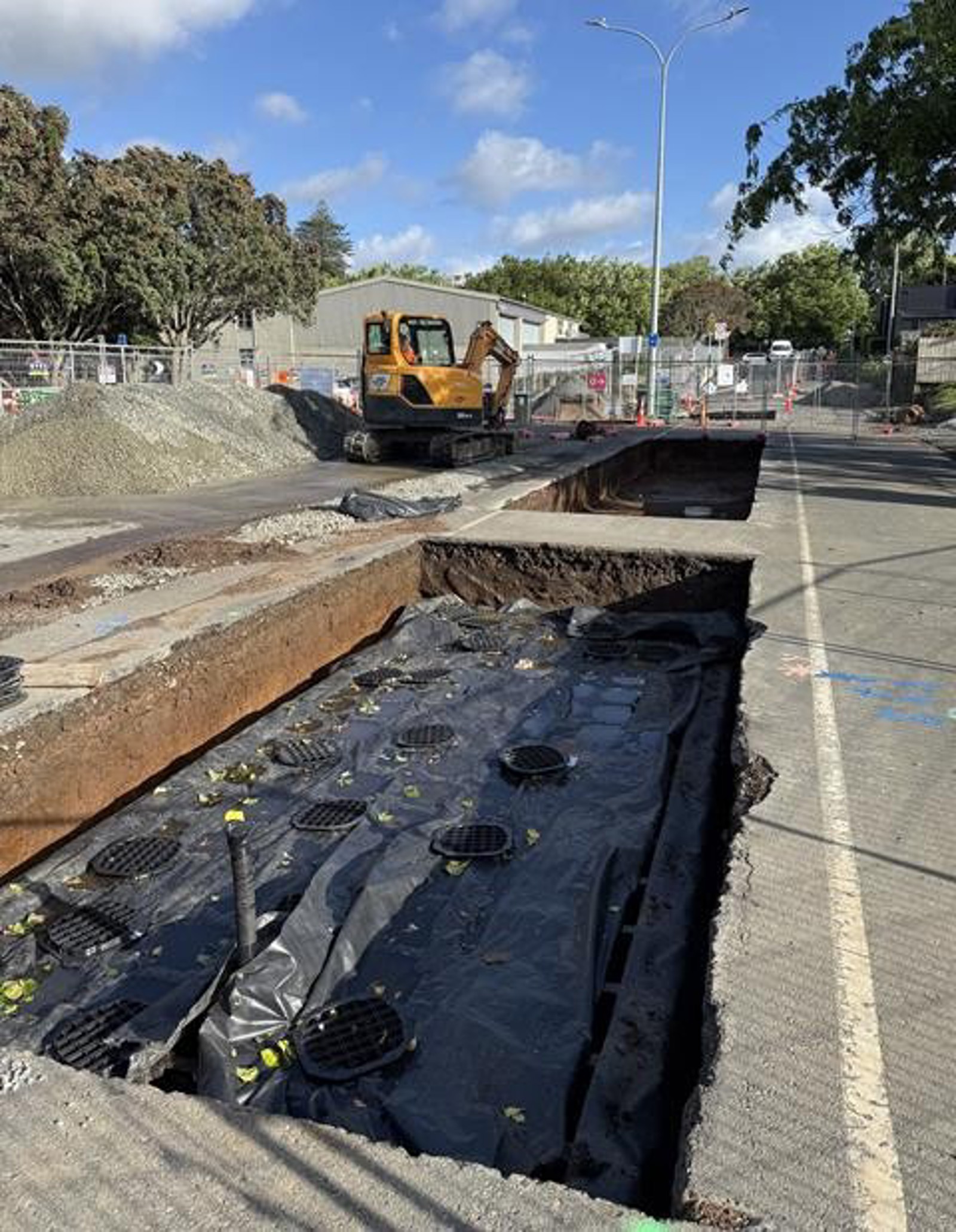 In the lower tier, closest to the shops, another 50 metres of new watermain has been installed. Around half of the wastewater line through the culvert (beneath the footpath) has now been replaced, and all stormwater works are complete.