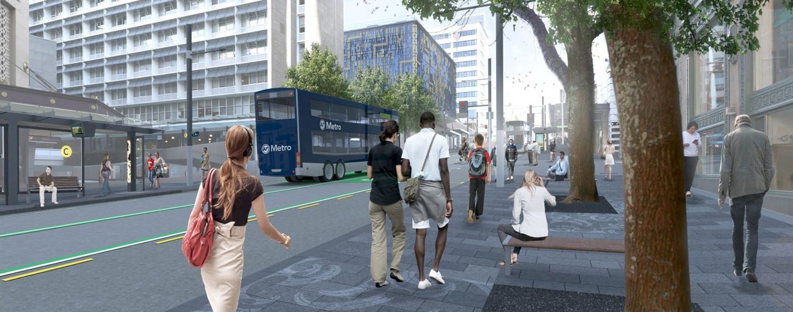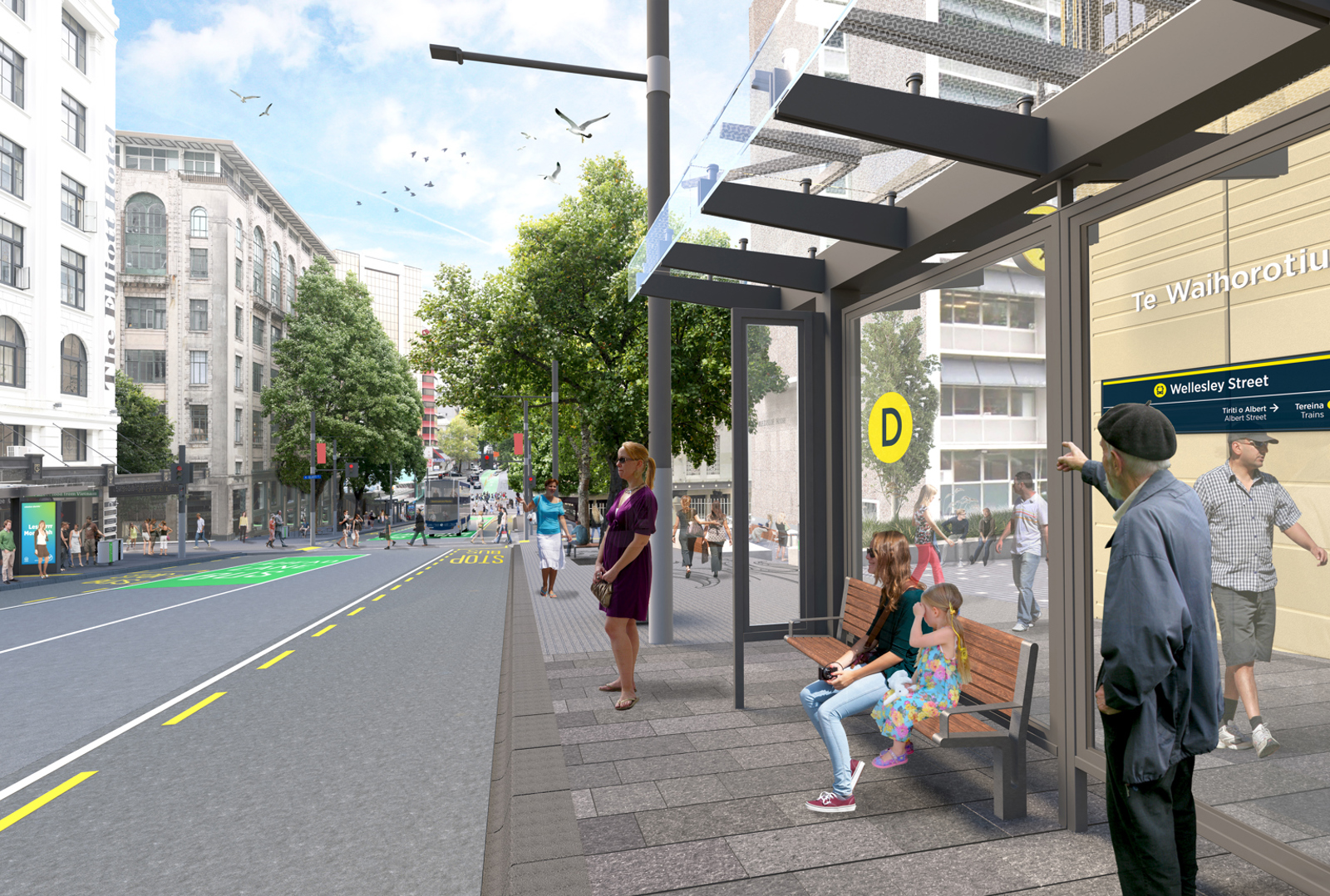 When Te Waihorotiu Station and surrounding upgrades are complete, midtown will become a major transport hub and cultural heart of the city centre. Thousands more people will move through the area each day, with easier connections between trains, buses, walking and cycling.