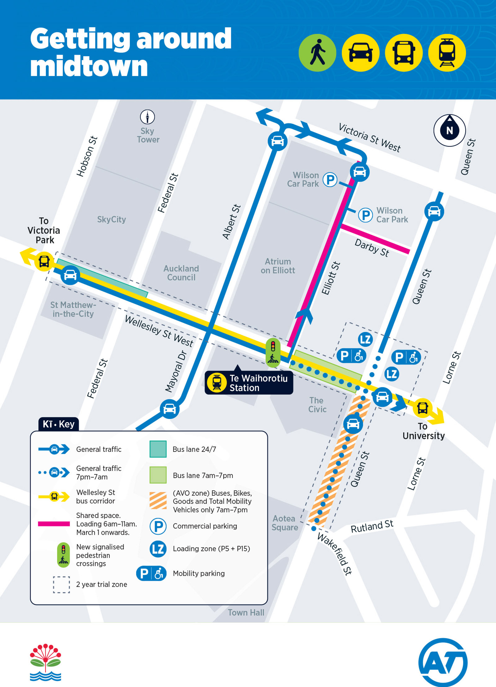 Auckland Council is supporting midtown to become one of Auckland’s busiest and most connected neighbourhoods — with safer streets, better public transport links and more welcoming places to spend time.
